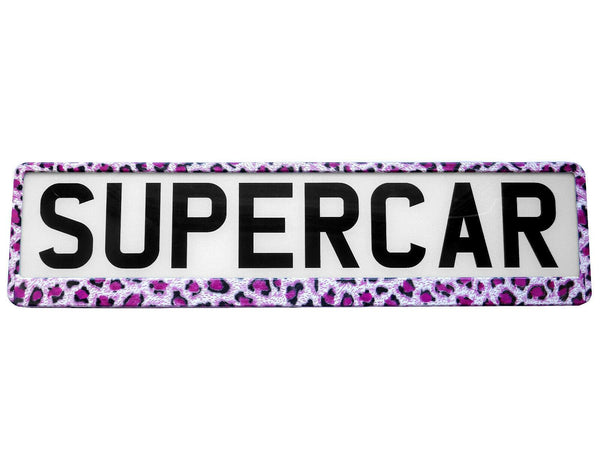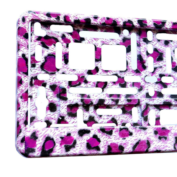 1x PURPLE LEOPARD ANIMAL PRINT CAR NUMBER PLATE HOLDER