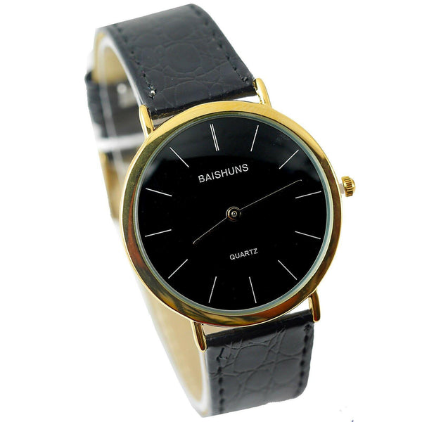 GENTS CLASSIC BUSINESS BLACK DIAL DESIGN BLACK BAND GOLD STAINLESS STEEL WATCH