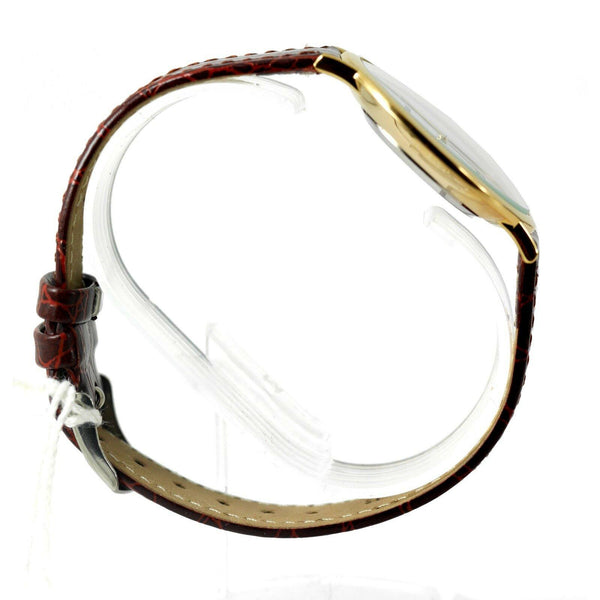 GENTS CLASSIC BUSINESS WHITE DIAL DESIGN BROWN BAND GOLD STAINLESS STEEL WATCH
