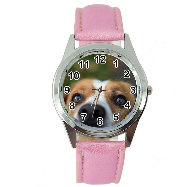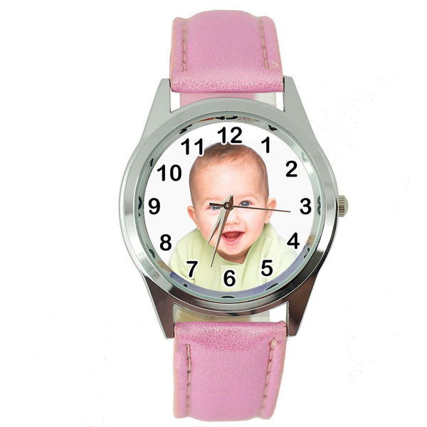 YOUR CUSTOM TEXT PHOTO WATCH Quartz Stainless Steel PINK LEATHER ROUND WATCH