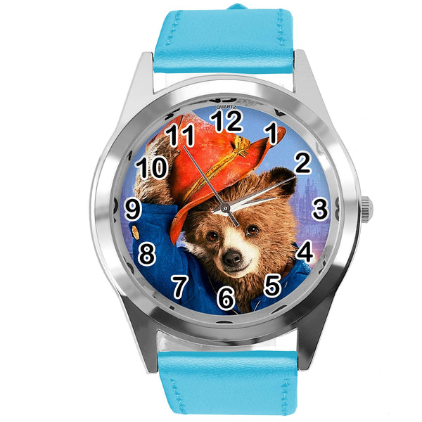 Blue Leather Quartz Round Watch for Teddy Bear Fans e3