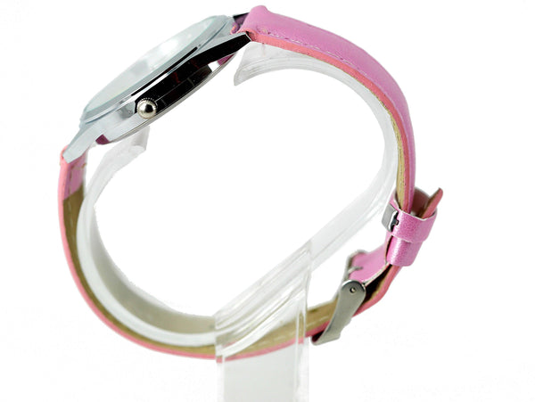 ELVIS E1 quartz round WATCH with real pink leather strap